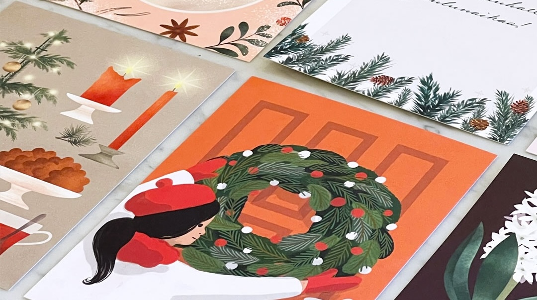 10 postikortin ylläripaketti jouluisesti kuvitettuja postikortteja!