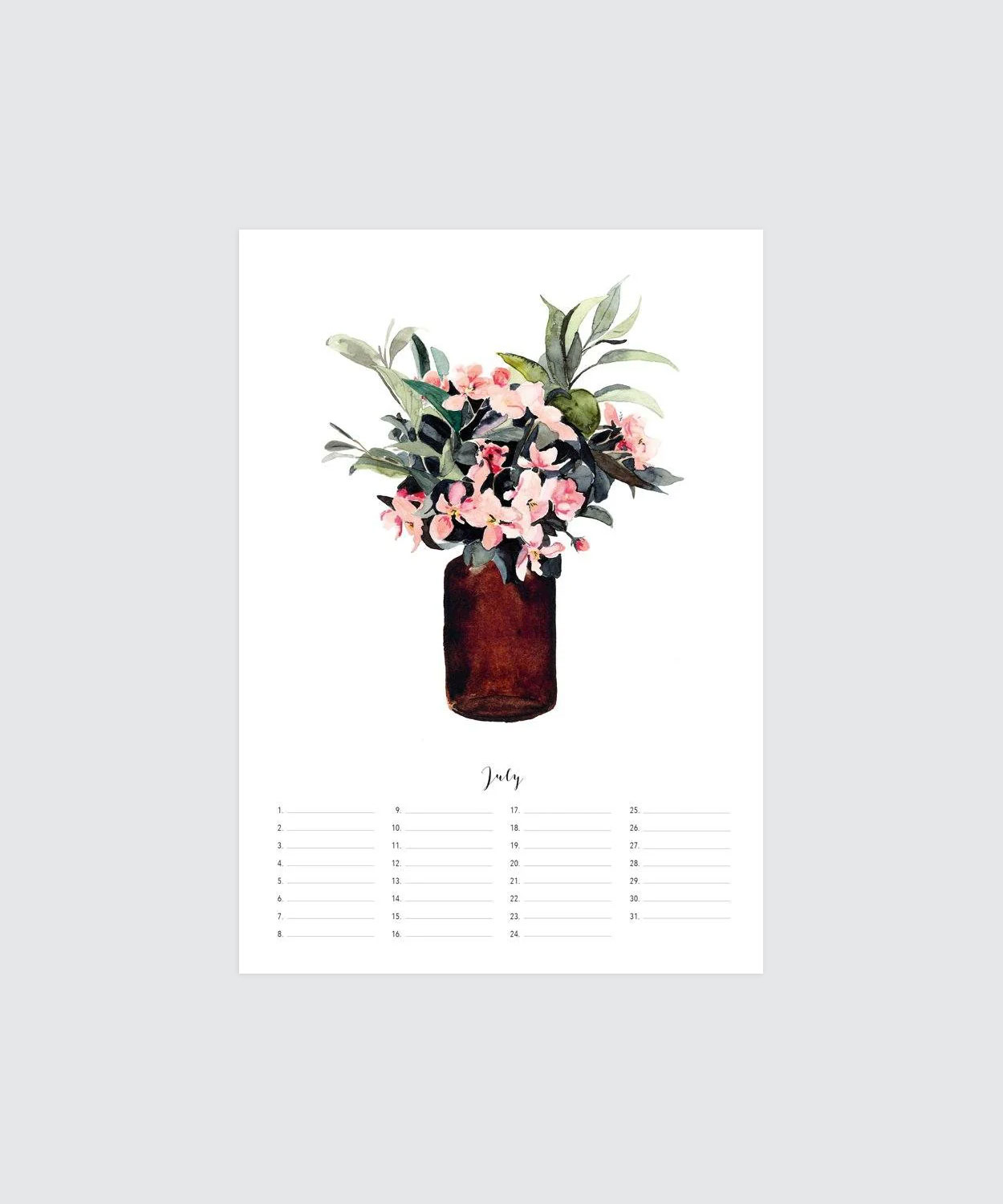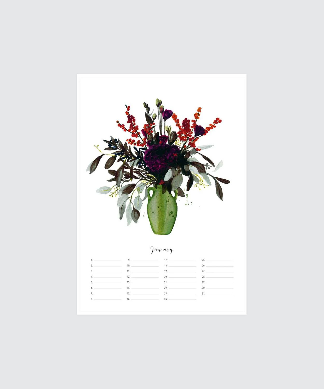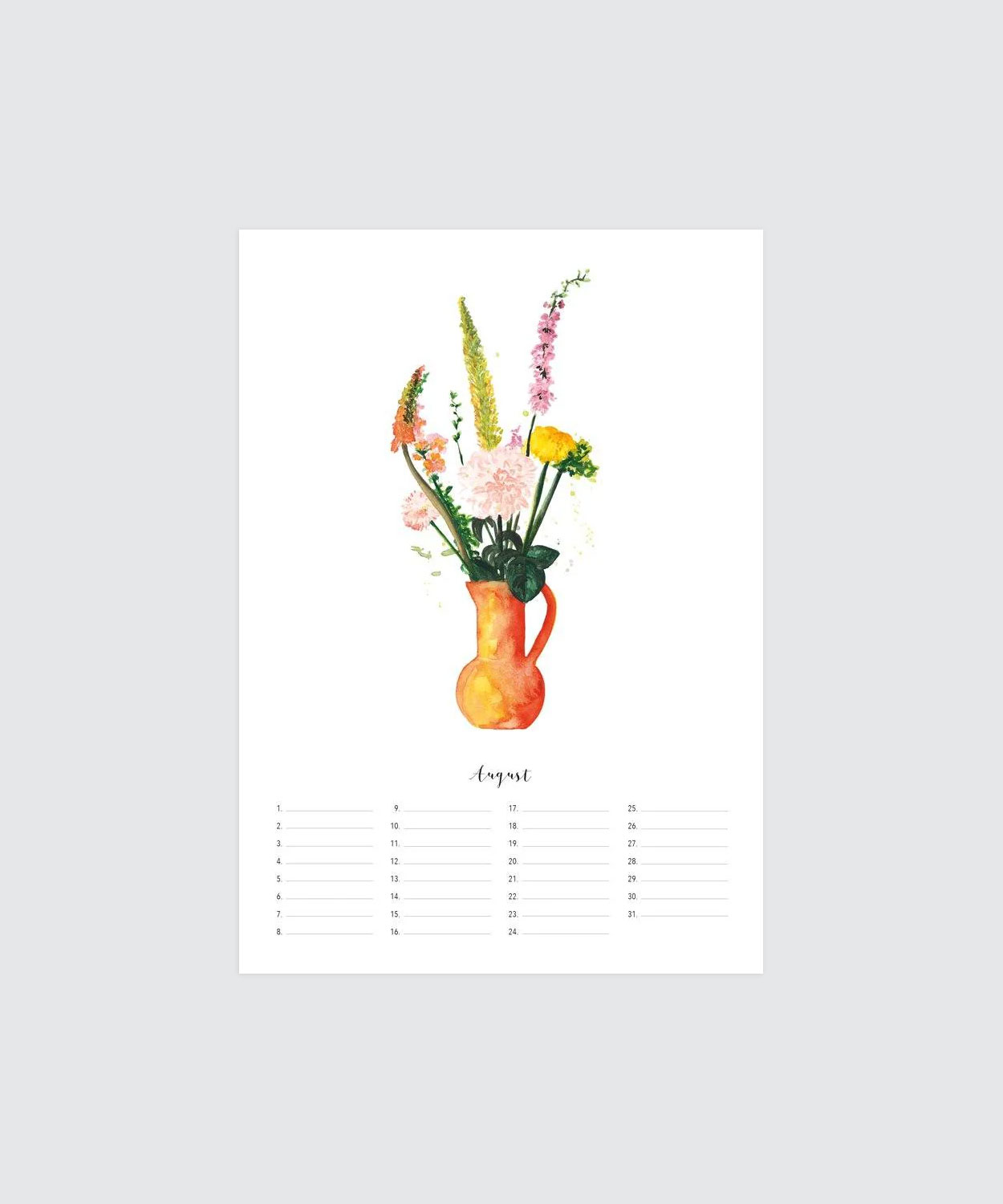 Syntymäpäiväkalenterissa on jokaiselle kuukaudelle numeroinnit ja tilaa päivänsankarin nimen kirjoittamiseen – tai vuosipäivän, kalenteri sopii mainiosti kaikille vuosittain samalla päivämääränä toistuville juhlille! Kuvituksien kimput ovat inspiroituneet vaihtuvien vuoden aikojen värimaailmoista.