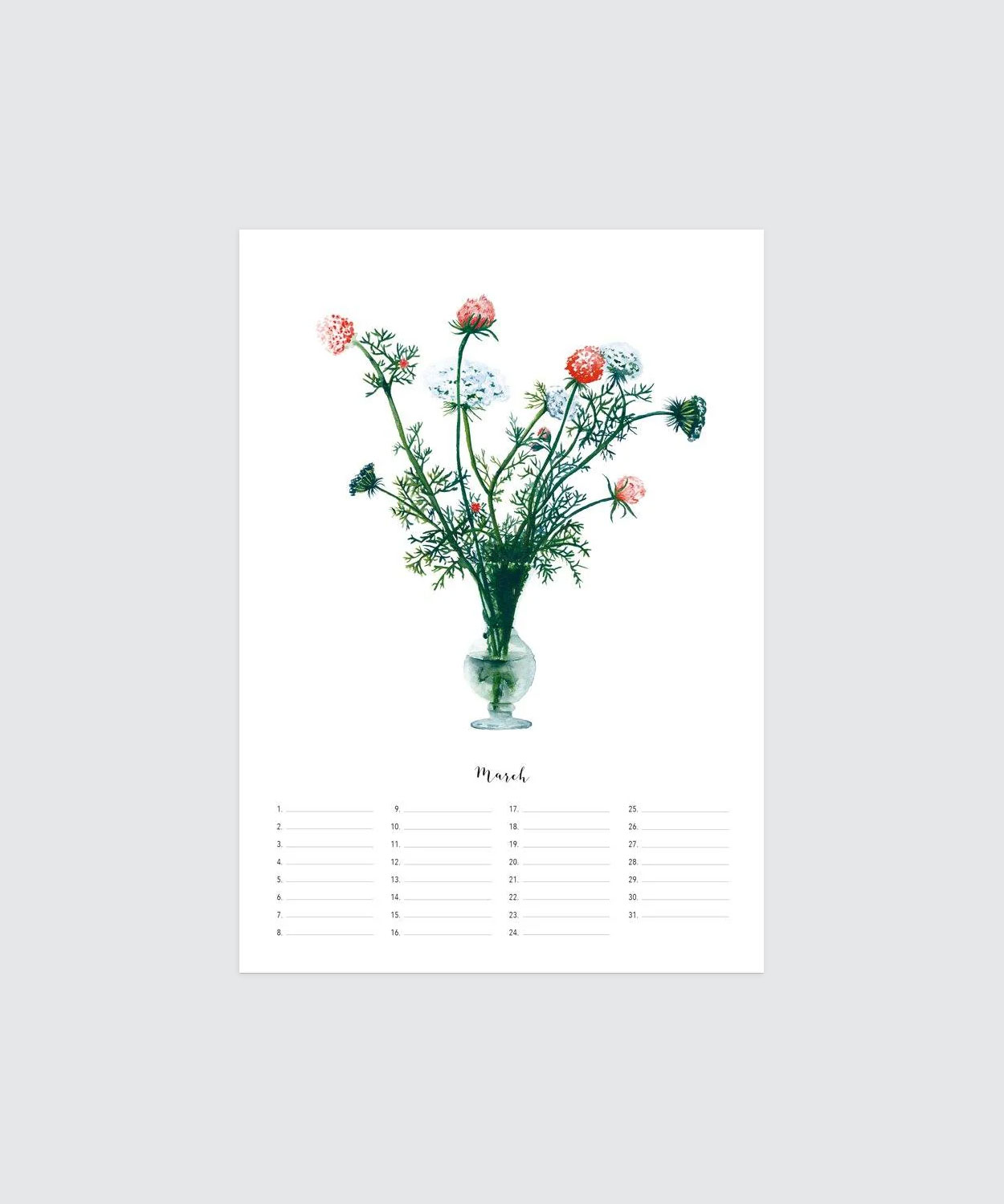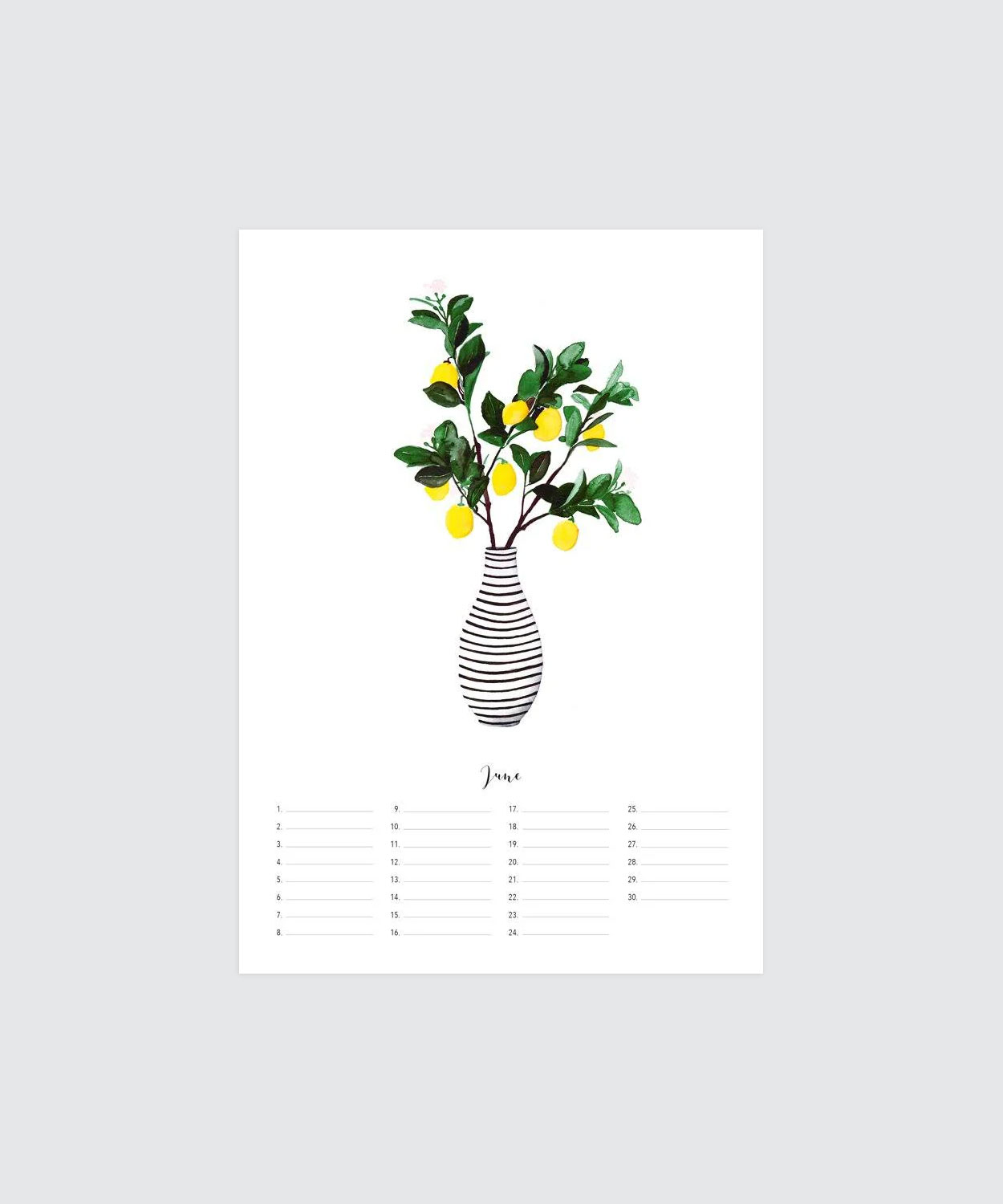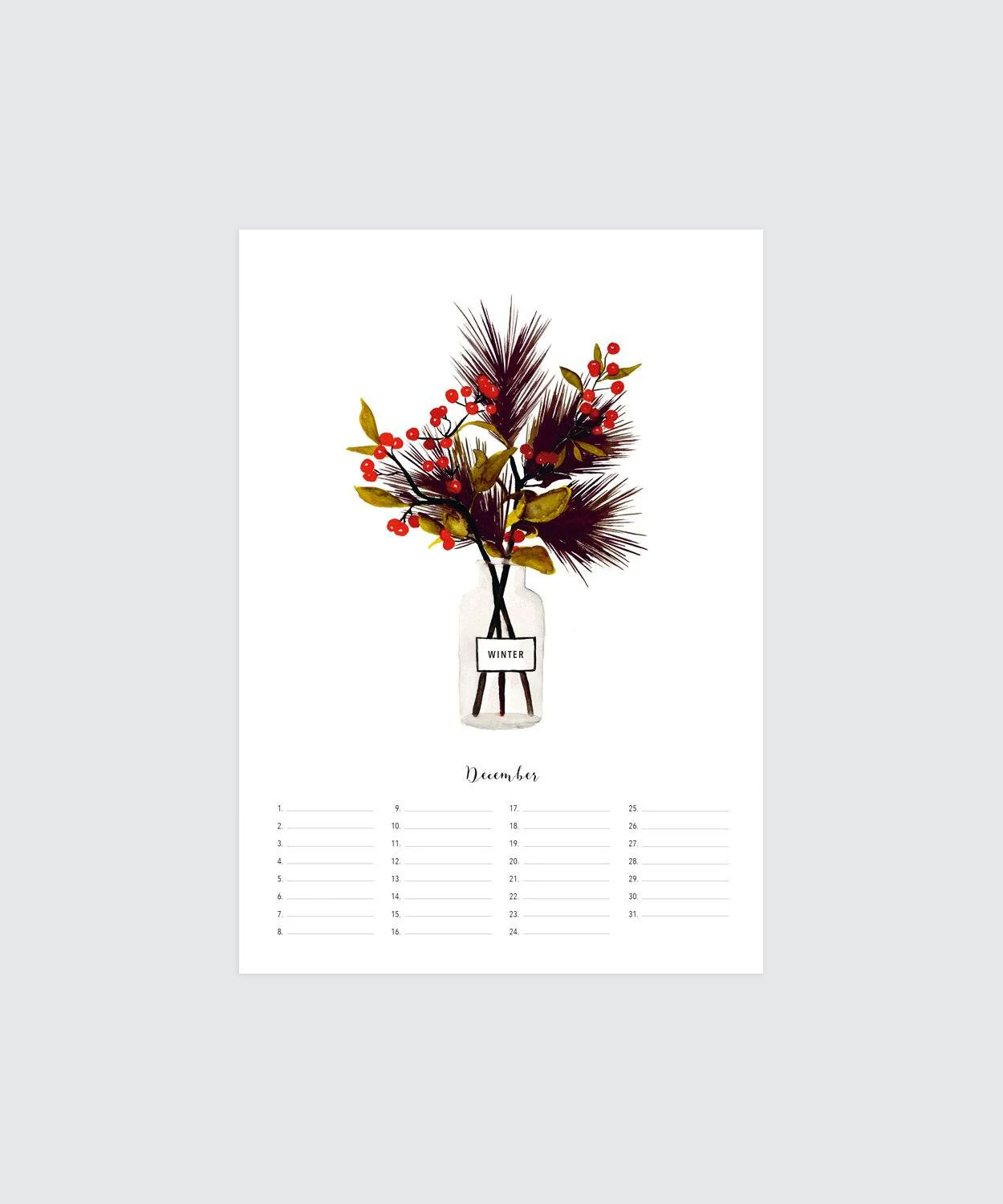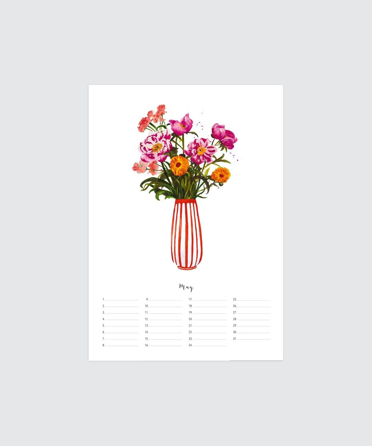 Syntymäpäiväkalenterissa on jokaiselle kuukaudelle numeroinnit ja tilaa päivänsankarin nimen kirjoittamiseen – tai vuosipäivän, kalenteri sopii mainiosti kaikille vuosittain samalla päivämääränä toistuville juhlille! Kuvituksien kimput ovat inspiroituneet vaihtuvien vuoden aikojen värimaailmoista.