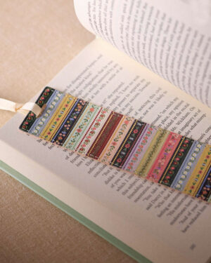 Älä enää koskaan hukkaa sivua – tässä kauniisti kuvitettu kirjanmerkki ja viimeistelynä ribbinauha.
