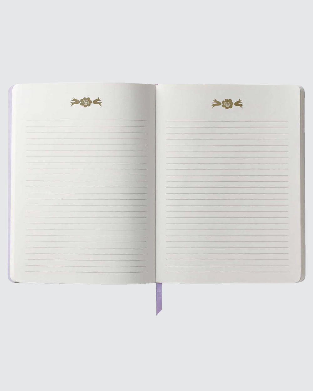 Muistikirja sisältää 150 viivoitettua, luonnonvalkoista sivua sekä kirjanmerkkinauhan.