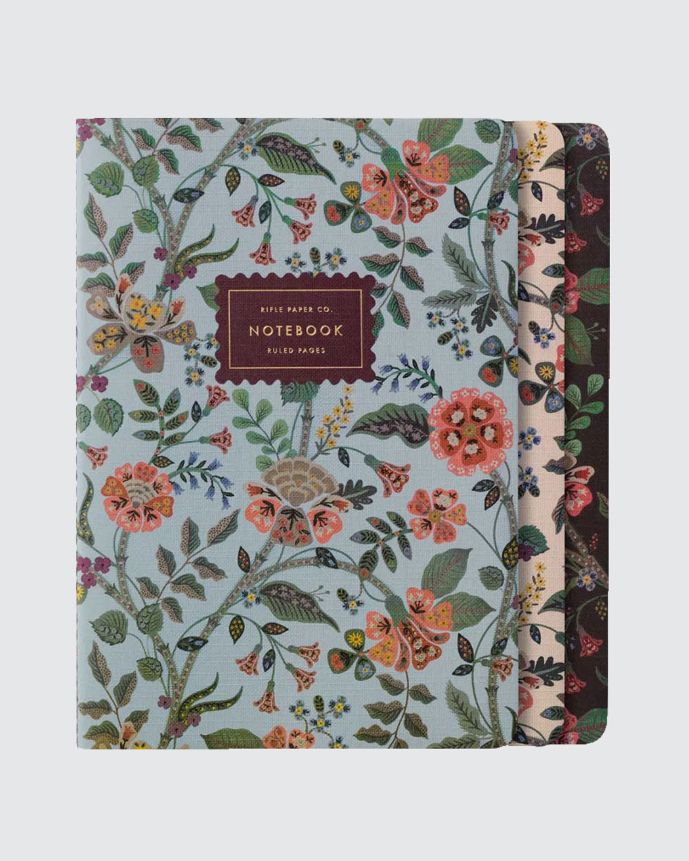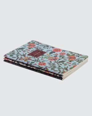 Tämä kaunis setti sisältää kolme muistivihkoa kukin kuvitetuilla kansilla ja 64 viivoitetulla, luonnonvalkoisella sivulla. Vihkoissa on ommeltu selkämys. Sidonnan johdosta ne saa tasaisesti auki ja siten vaikka koko aukeaman verran pinta-alaa helposti yhtenäiseen käyttöön.