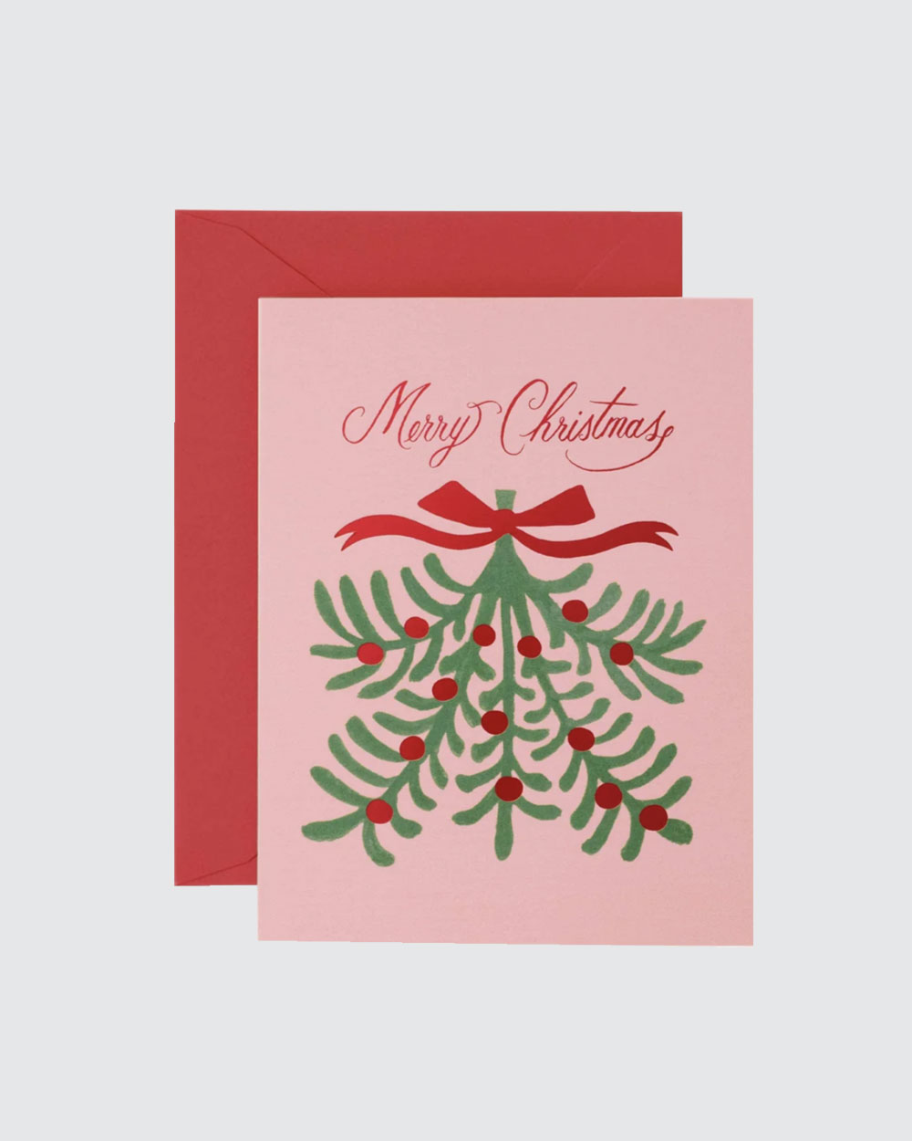 Kauniisti kuvitettu kortti Merry Christmas -tekstillä. 2-osainen joulukortti on sisältä tyhjä ja sen mukana tulee kirjekuori.