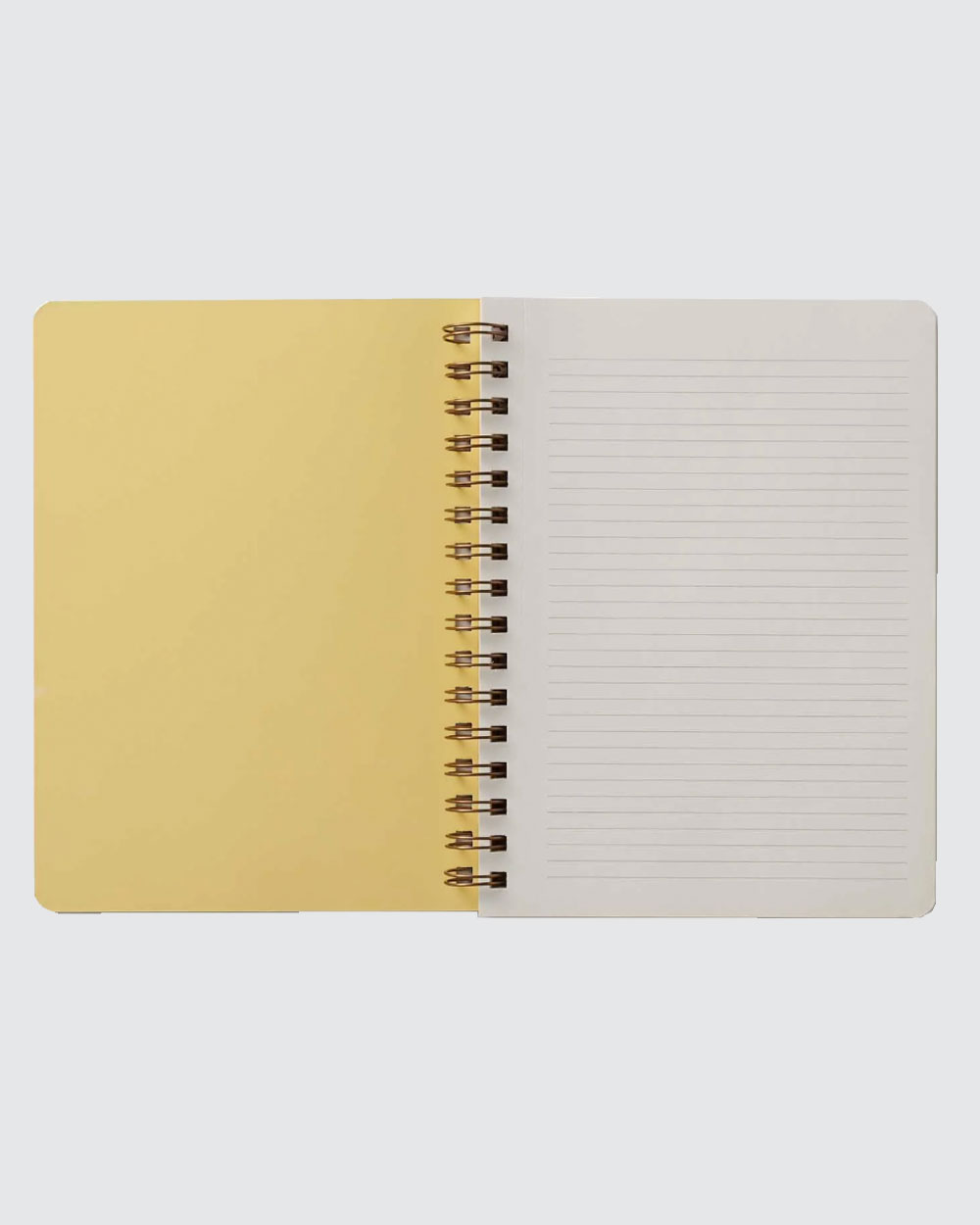 Kaksinkertainen kierresidonta tekee muistikirjasta miellyttävän tukevasti kiinnitetyn ja samalla kätevästi avattavan: Kun etukannen ja aiemmin käytetyt sivut saa käännettyä kokonaan muistikirjan alle, syntyy hyvä alusta kirjoittaa muistiinpanoja vaikka reissun päällä, esimerkiksi työmatkalla bussissa.