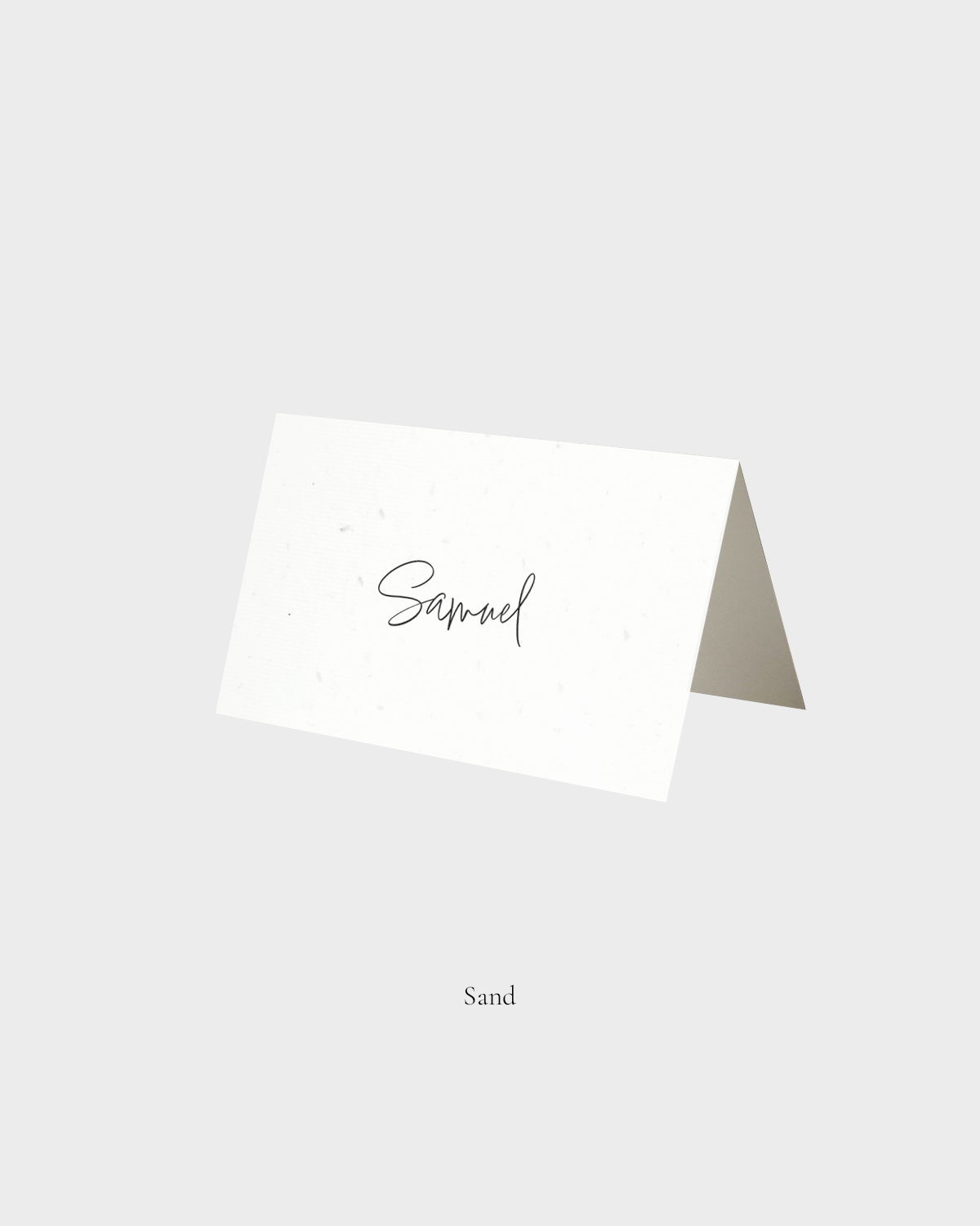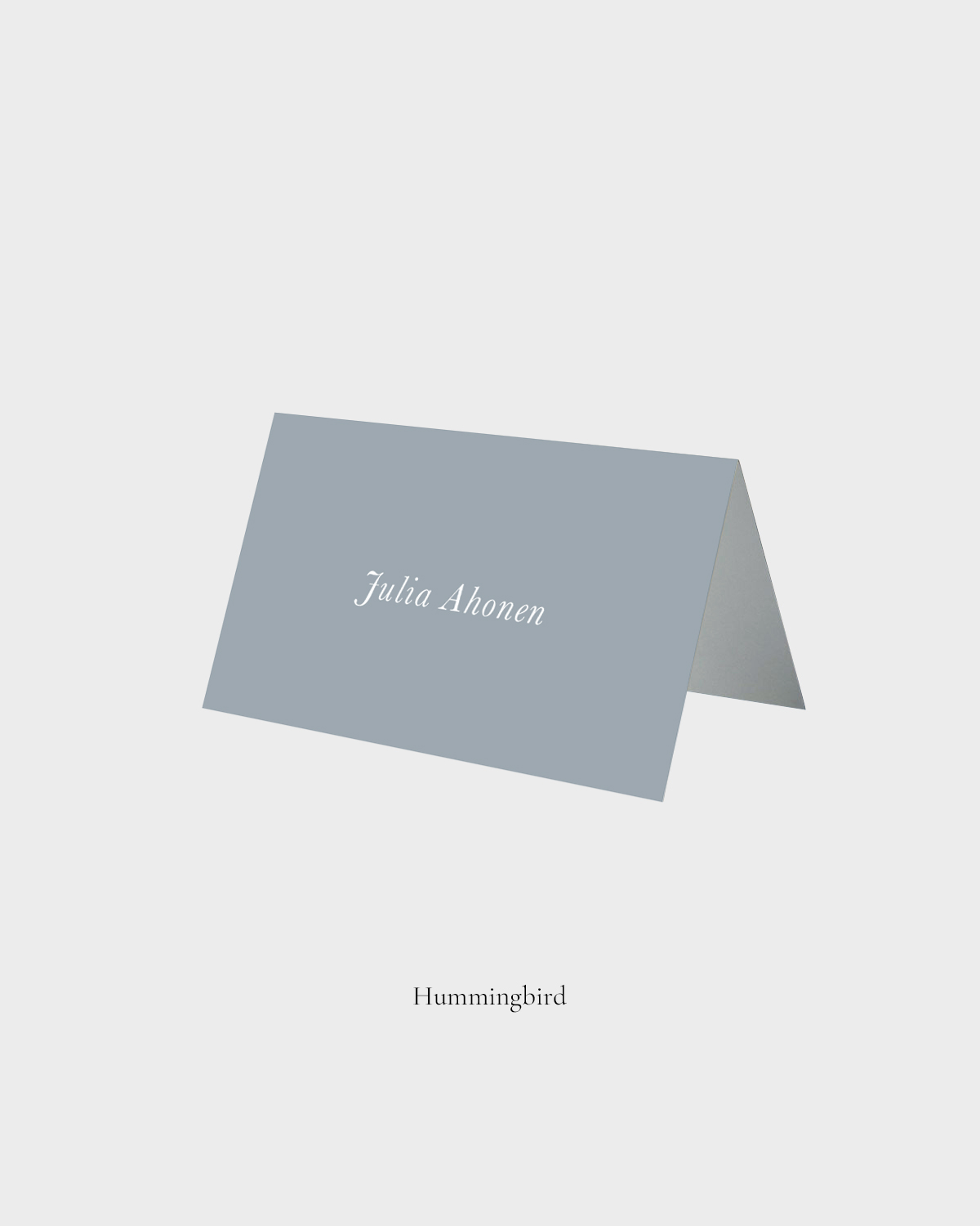 Paikkakortit ovat saatavissa kutsuista tutuilla tyyleillä ja papereilla. Huomioithan, että sävyt saattavat näyttää ruudulla erilaisilta kuin luonnossa.