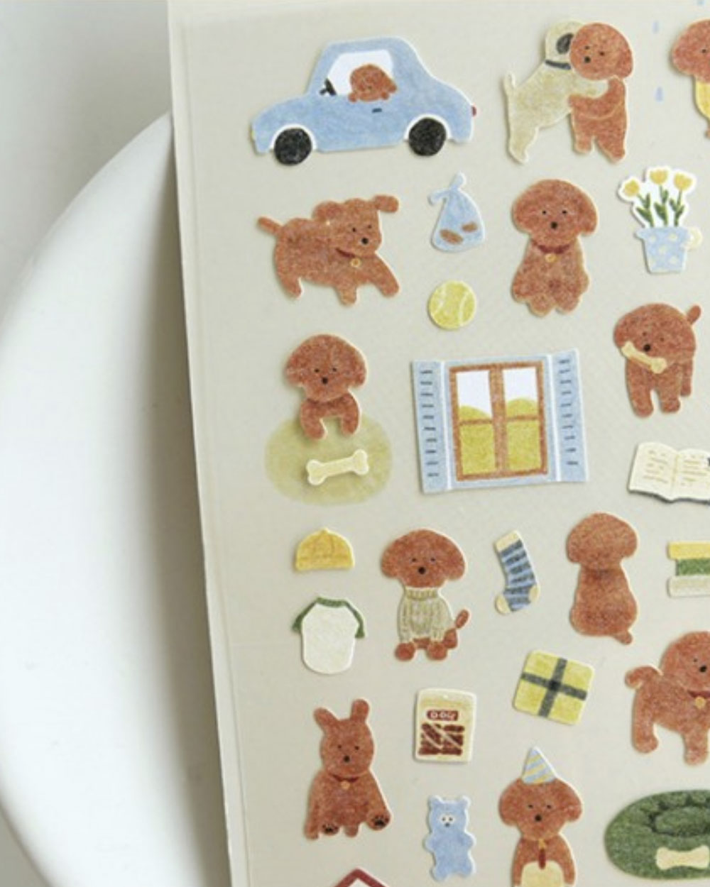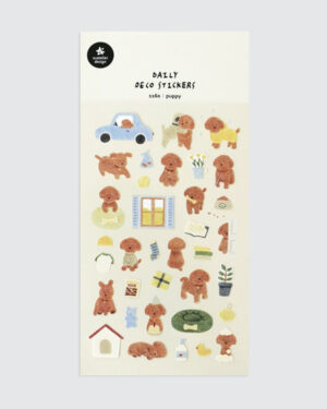 Suatelierin ihanasti kuvitetussa tarra-arkissa on yhteensä 35 tarraa. Arkissa on montaa eri mallista ja kokoista tarraa pääasiassa koiranpentu-teemalla.