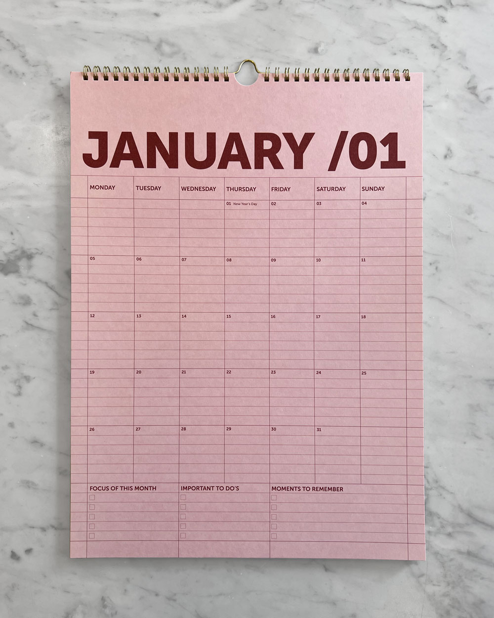 A-journalin iso seinäkalenteri vuodelle 2026. Ripustettava kalenteri on A3-kokoinen ja sen yhdellä sivulla on kuukaudelle viivoitettuu ruudukkonäkymä.