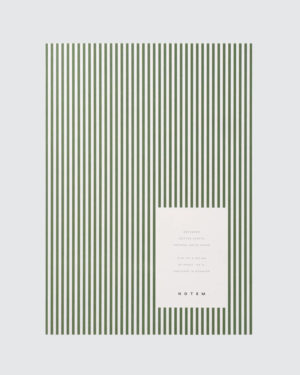 Notemin graafisen tyylikäs muistivihko raikkailla raidallisilla kansilla. Vihkossa on 80 luonnonvalkoista, pinnoittamatonta sivua pisteillä.